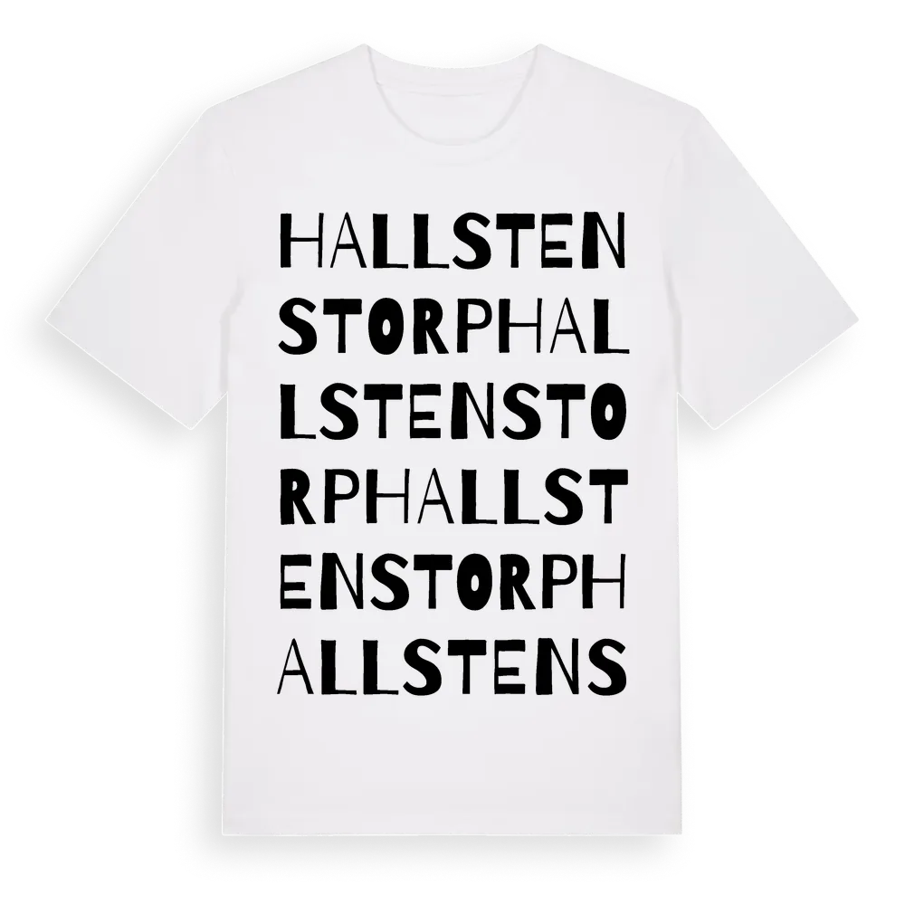 Hallstenstorp ordlek t-shirt är inspirerad av Hallstenstorp i Värmlands län, Sverige. Tröjan är designad för dig som har en speciell koppling till platsen – oavsett om du bor här, har rötterna här eller bara älskar Hallstenstorp.