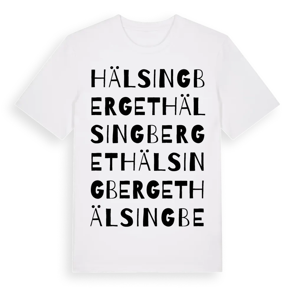 Hälsingberget ordlek t-shirt är inspirerad av Hälsingberget i Värmlands län, Sverige. Tröjan är designad för dig som har en speciell koppling till platsen – oavsett om du bor här, har rötterna här eller bara älskar Hälsingberget.