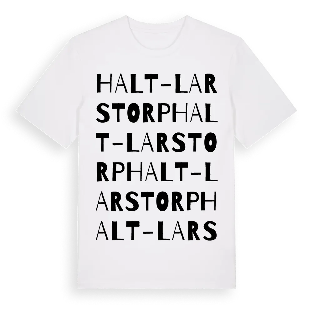 En ordlek byggd på Halt-Larstorps namn. Subtilt och klurig – ett motiv som bara de som verkligen känner platsen fullt ut förstår. Premium bomull, unisex – från Halt-Larstorp i Värmlands län.