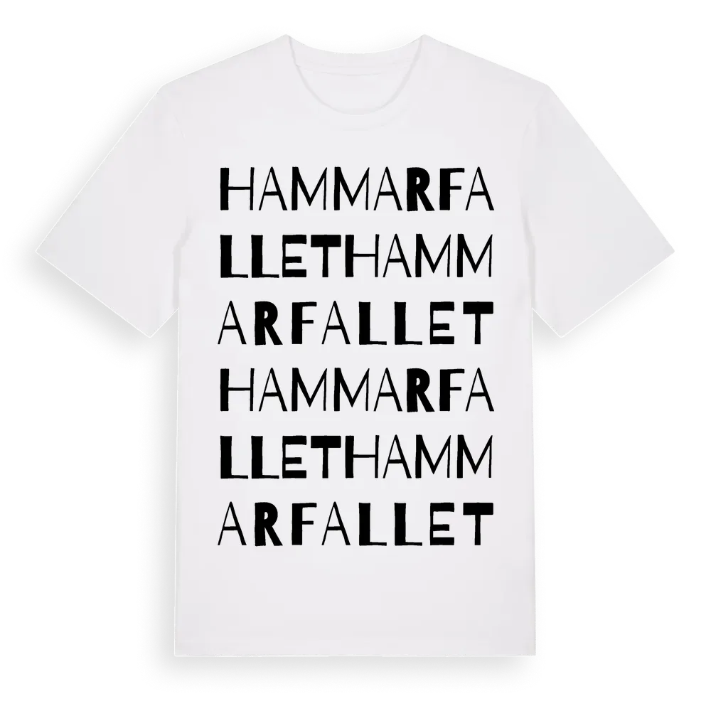 Hammarfallet ordlek t-shirt är inspirerad av Hammarfallet i Värmlands län, Sverige. Tröjan är designad för dig som har en speciell koppling till platsen – oavsett om du bor här, har rötterna här eller bara älskar Hammarfallet.