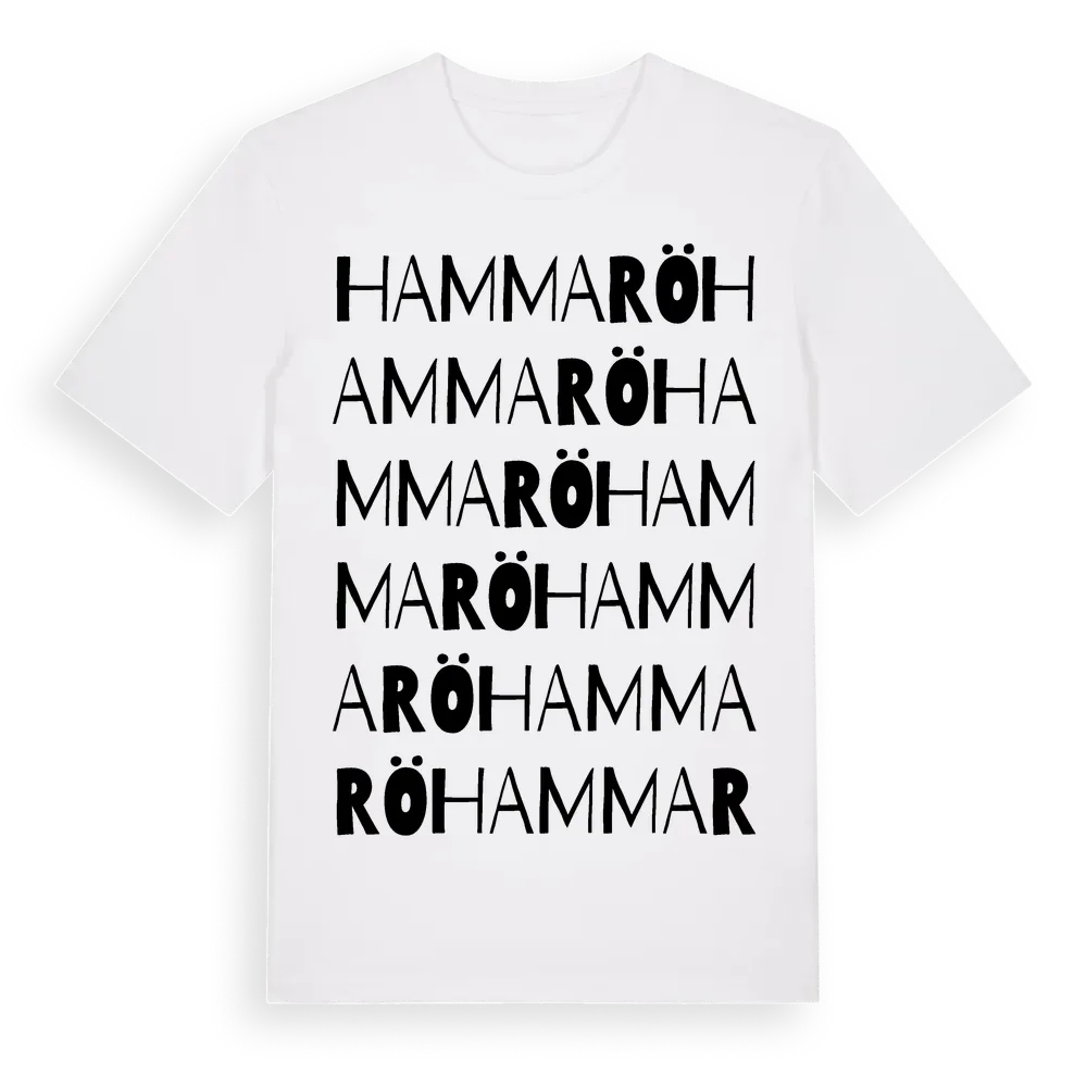 Hammarö ordlek t-shirt är inspirerad av ön Hammarö i Värmlands län, Sverige. Tröjan är designad för dig som har en speciell koppling till platsen – oavsett om du bor här, har rötterna här eller bara älskar Hammarö.