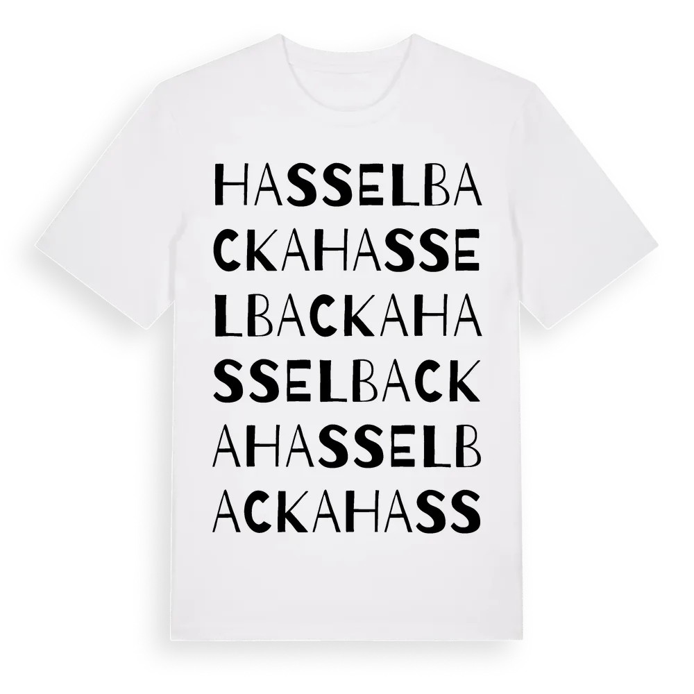 Hasselbacka ordlek t-shirt är inspirerad av Hasselbacka i Värmlands län, Sverige. Tröjan är designad för dig som har en speciell koppling till platsen – oavsett om du bor här, har rötterna här eller bara älskar Hasselbacka.