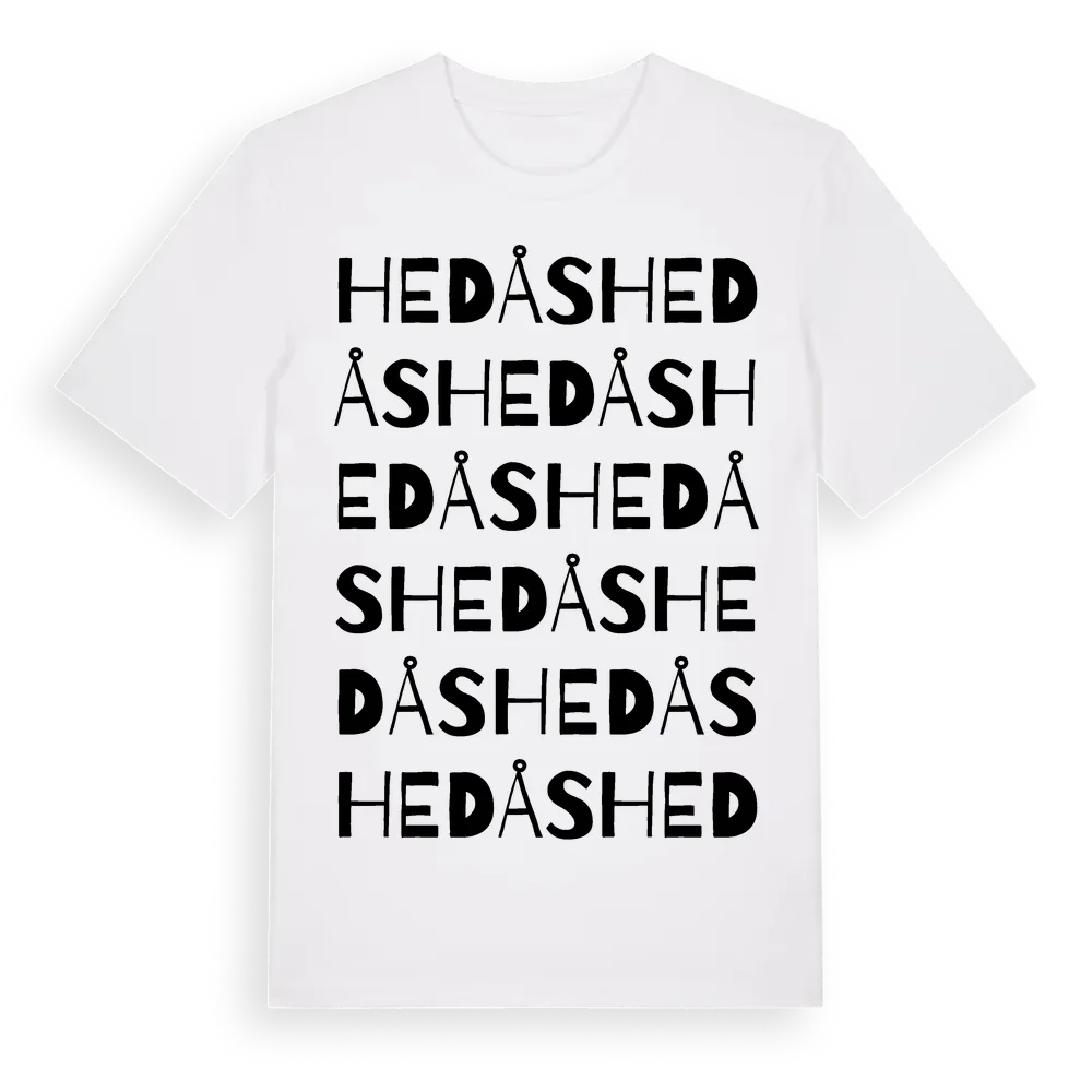 Hedås ordlek t-shirt är inspirerad av byn Hedås i Värmlands län, Sverige. Tröjan är designad för dig som har en speciell koppling till platsen – oavsett om du bor här, har rötterna här eller bara älskar Hedås.