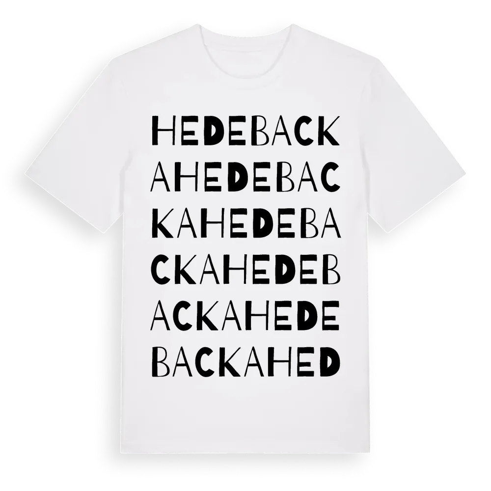 Hedebacka ordlek t-shirt är inspirerad av Hedebacka i Värmlands län, Sverige. Tröjan är designad för dig som har en speciell koppling till platsen – oavsett om du bor här, har rötterna här eller bara älskar Hedebacka.