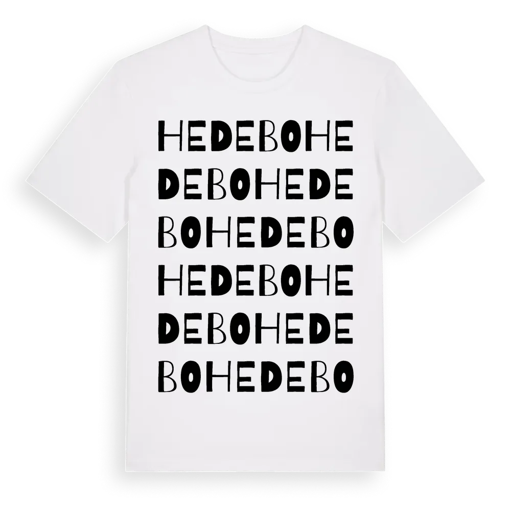 En ordlek byggd på Hedebos namn. Subtilt och klurig – ett motiv som bara de som verkligen känner platsen fullt ut förstår. Premium bomull, unisex – från Hedebo i Värmlands län.