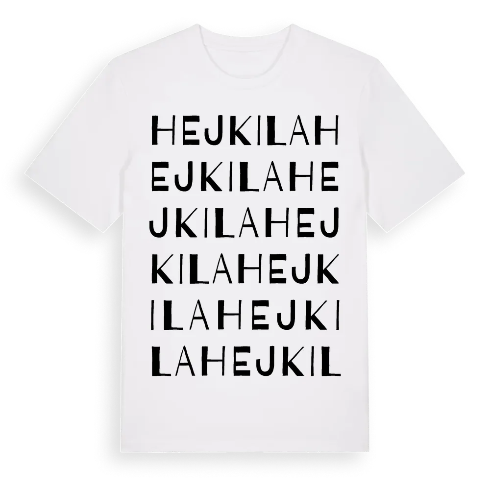 Hejkila ordlek t-shirt är inspirerad av Hejkila i Värmlands län, Sverige. Tröjan är designad för dig som har en speciell koppling till platsen – oavsett om du bor här, har rötterna här eller bara älskar Hejkila.