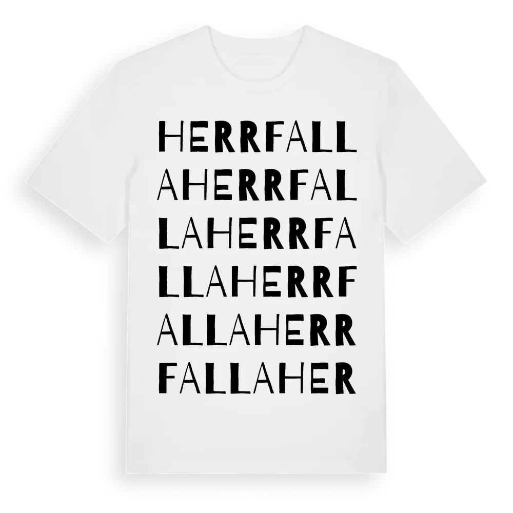 En ordlek byggd på Herrfallas namn. Subtilt och klurig – ett motiv som bara de som verkligen känner platsen fullt ut förstår. Premium bomull, unisex – från Herrfalla i Värmlands län.
