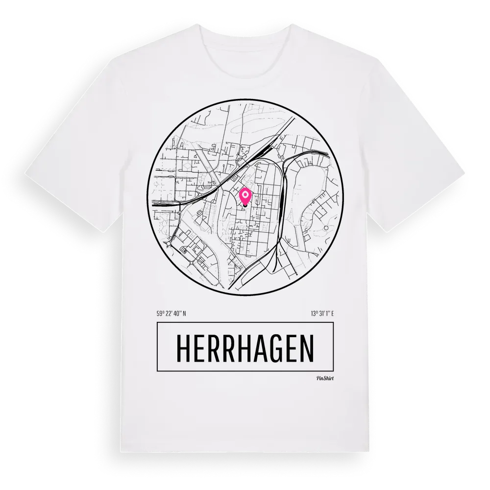 Ett rent, runt tryck med Herrhagens namn. Minimalistiskt och stilrent – perfekt för den som känner platsen utan att skrika det. Premium bomull, unisex – från stadsdelen Herrhagen i Värmlands län.