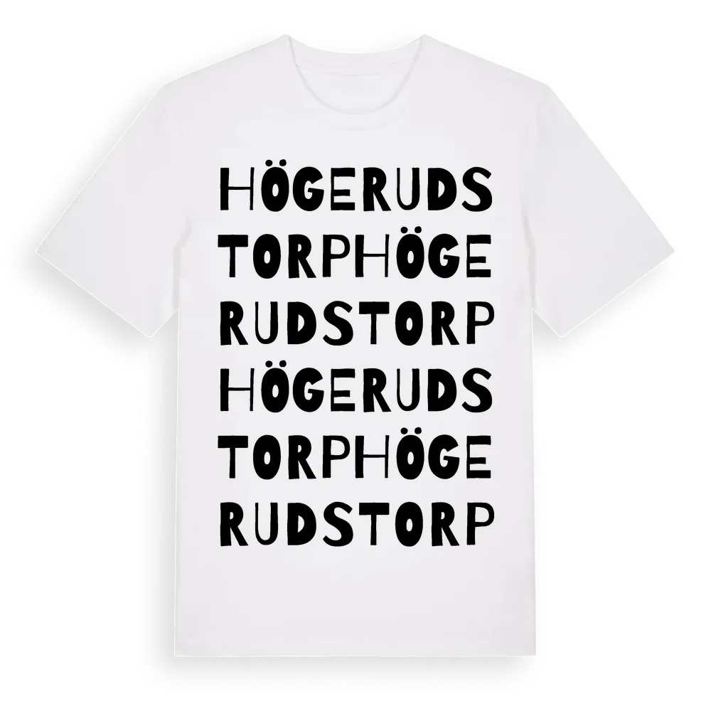 Högerudstorp ordlek t-shirt är inspirerad av Högerudstorp i Värmlands län, Sverige. Tröjan är designad för dig som har en speciell koppling till platsen – oavsett om du bor här, har rötterna här eller bara älskar Högerudstorp.