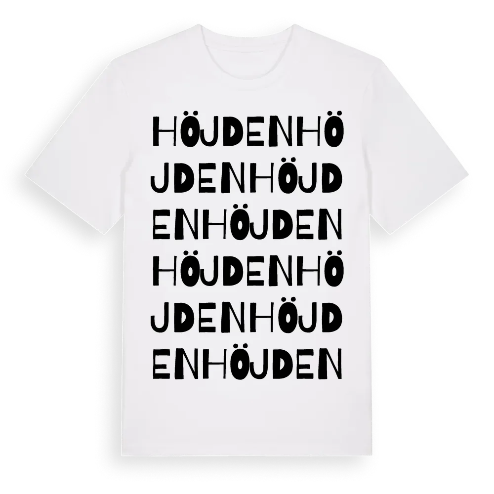 Höjden ordlek t-shirt är inspirerad av Höjden i Värmlands län, Sverige. Tröjan är designad för dig som har en speciell koppling till platsen – oavsett om du bor här, har rötterna här eller bara älskar Höjden.