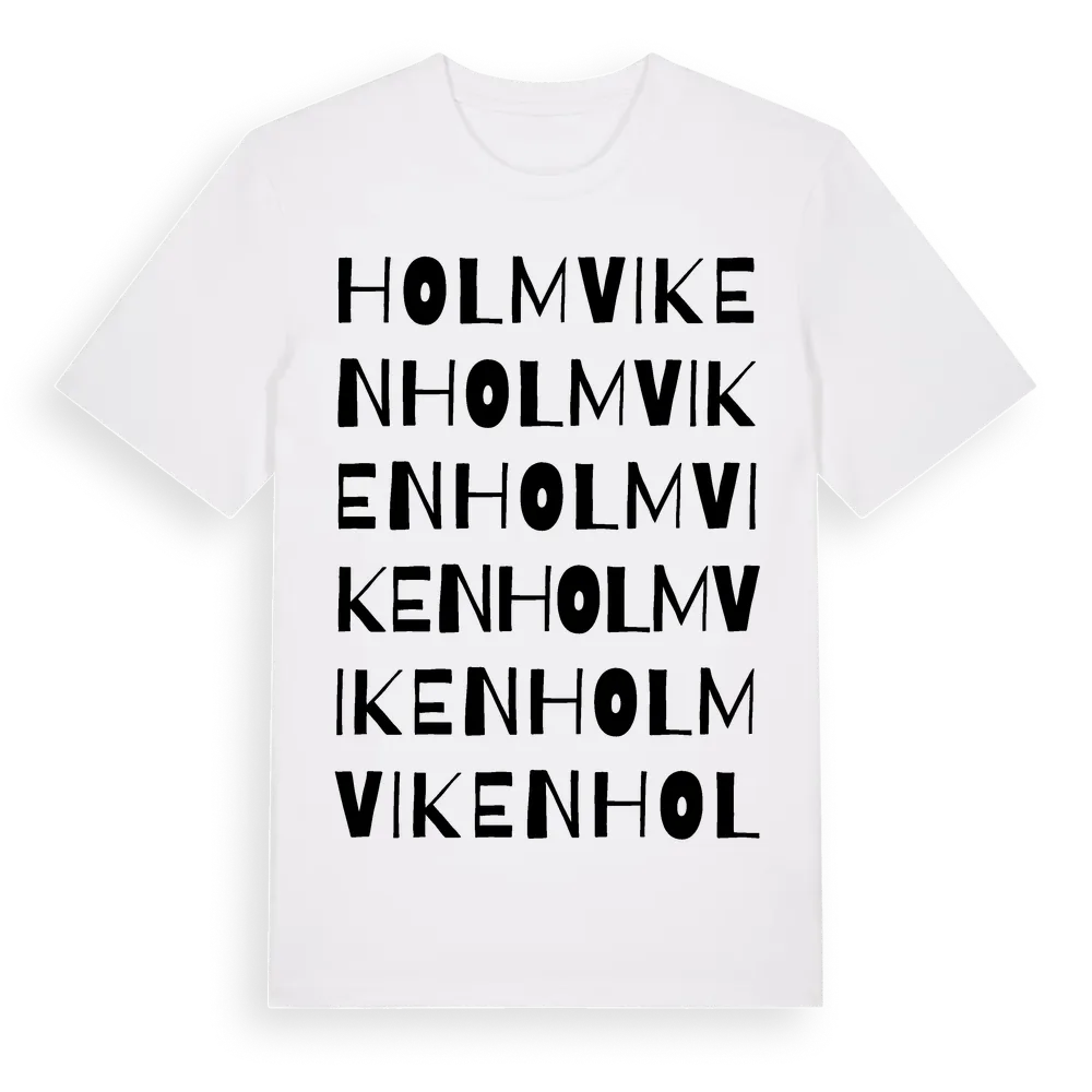 Holmviken ordlek t-shirt är inspirerad av Holmviken i Värmlands län, Sverige. Tröjan är designad för dig som har en speciell koppling till platsen – oavsett om du bor här, har rötterna här eller bara älskar Holmviken.