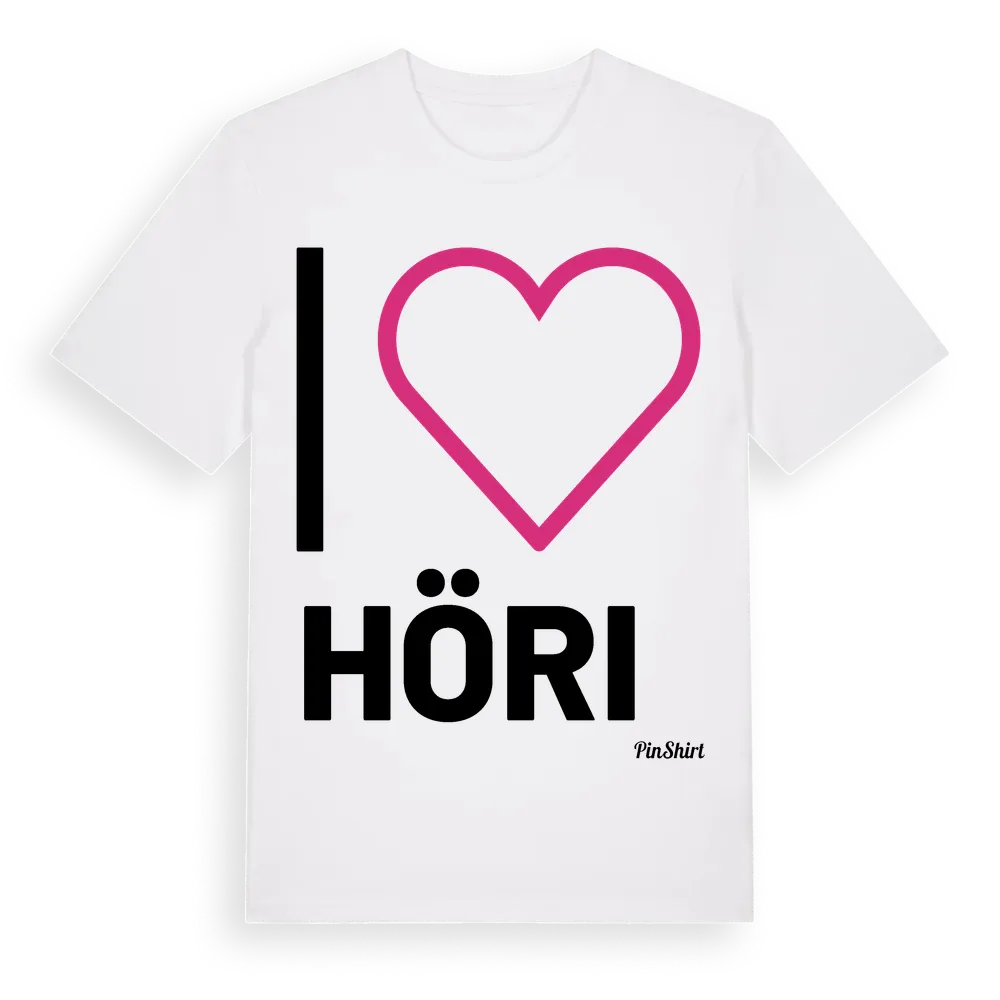 Det klassiska "I ❤ Höri"-motivet i stort format som täcker hela bröstet. För dig som vill visa kärleken till Höri på riktigt. Premium bomull, unisex – från Höri i Värmlands län.
