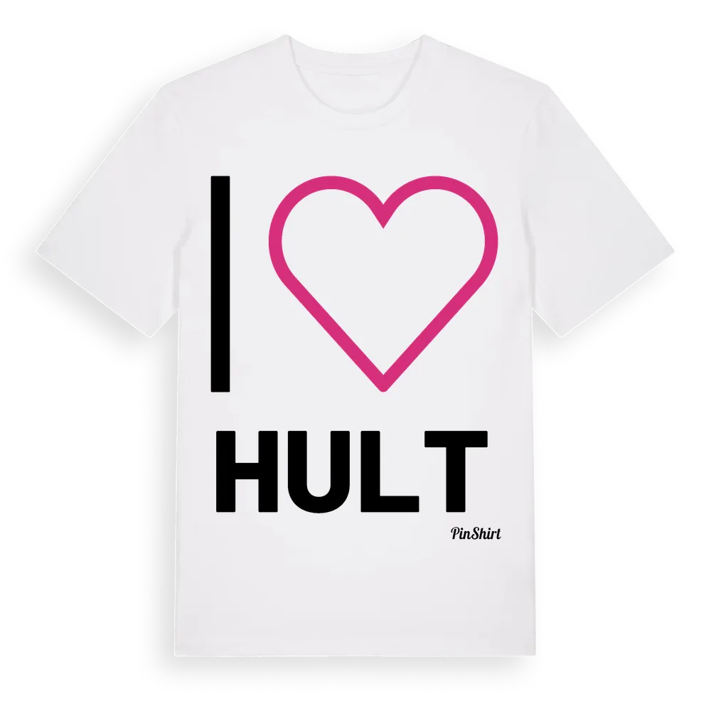 Det klassiska "I ❤ Hult"-motivet i stort format som täcker hela bröstet. För dig som vill visa kärleken till Hult på riktigt. Premium bomull, unisex – från Hult i Värmlands län.