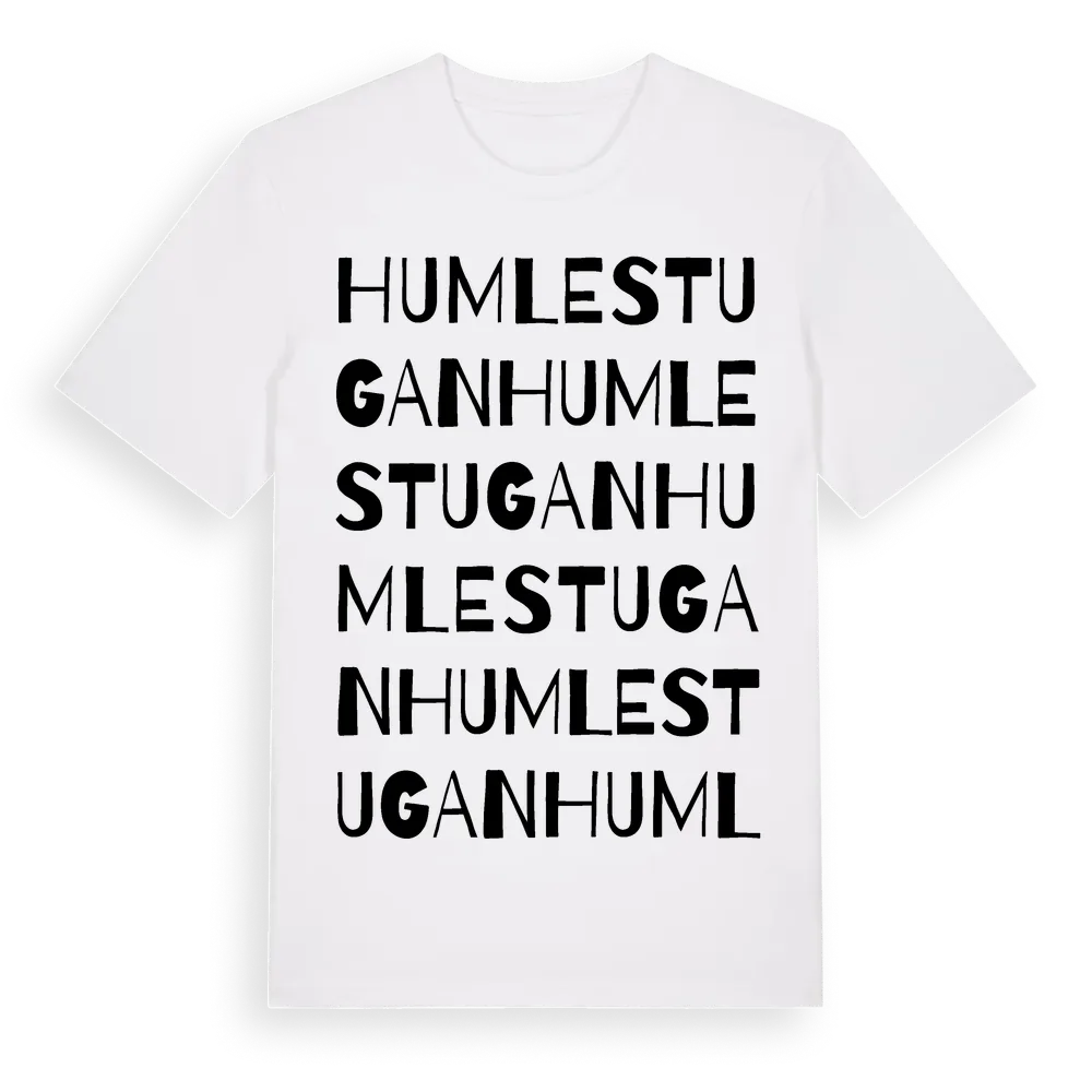 En ordlek byggd på Humlestugans namn. Subtilt och klurig – ett motiv som bara de som verkligen känner platsen fullt ut förstår. Premium bomull, unisex – från Humlestugan i Värmlands län.