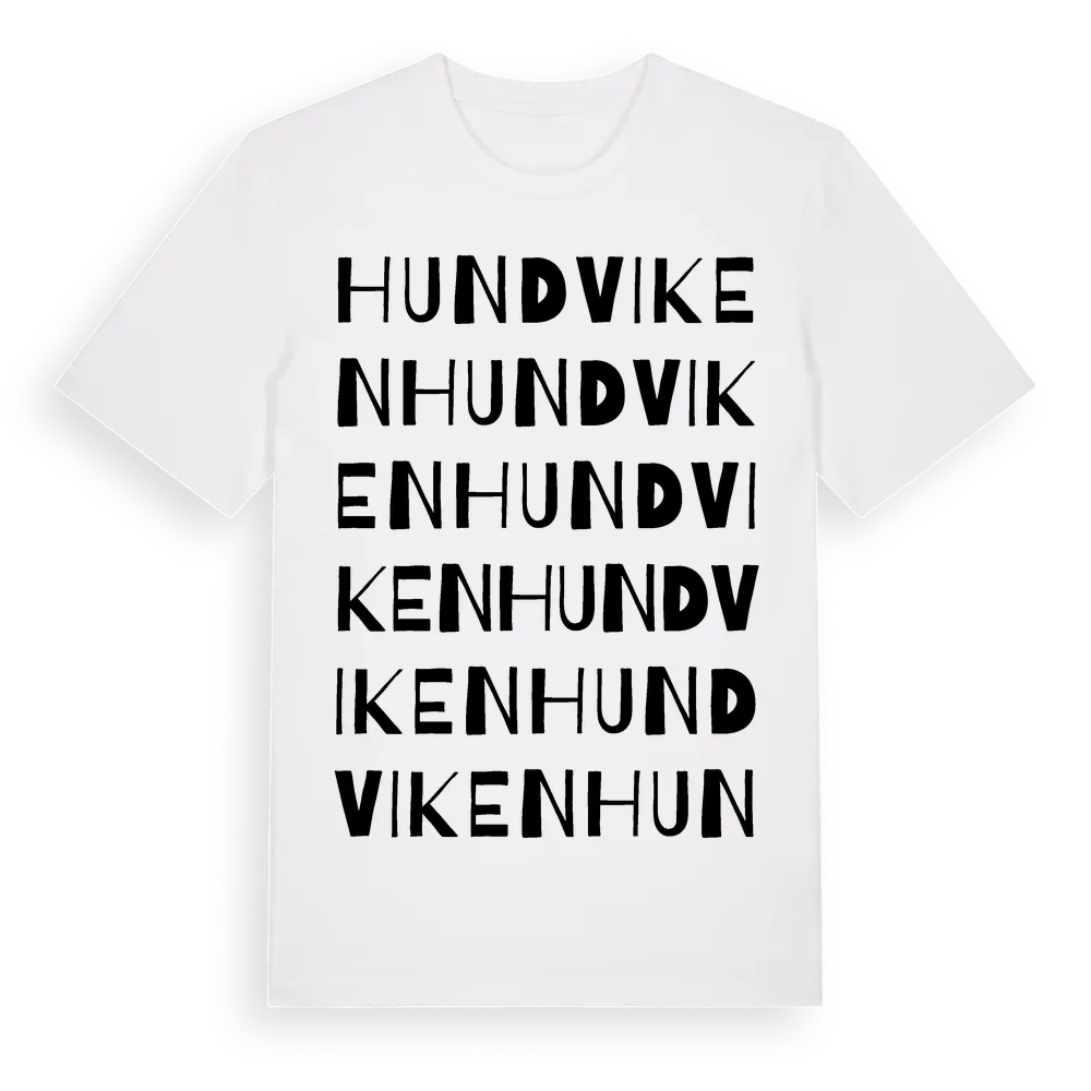 Hundviken ordlek t-shirt är inspirerad av Hundviken i Värmlands län, Sverige. Tröjan är designad för dig som har en speciell koppling till platsen – oavsett om du bor här, har rötterna här eller bara älskar Hundviken.