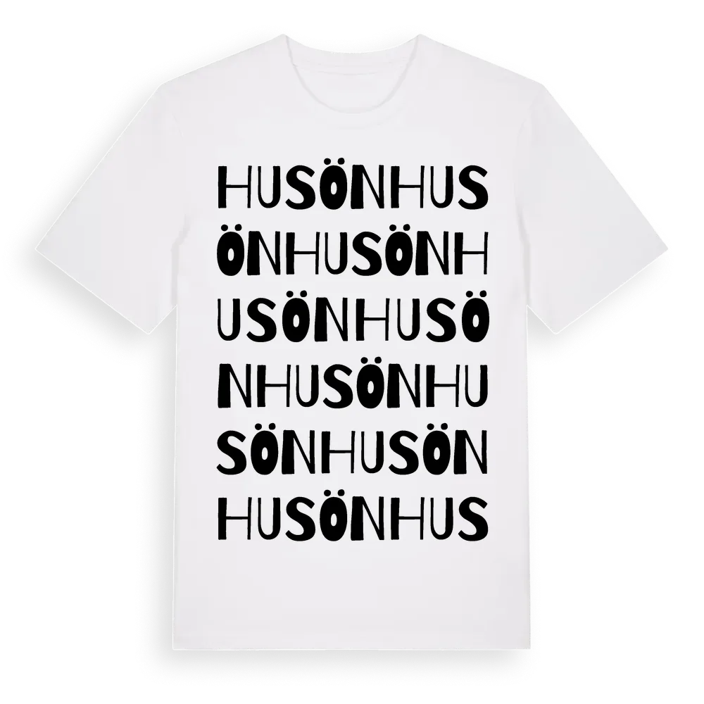 Husön ordlek t-shirt är inspirerad av ön Husön i Värmlands län, Sverige. Tröjan är designad för dig som har en speciell koppling till platsen – oavsett om du bor här, har rötterna här eller bara älskar Husön.