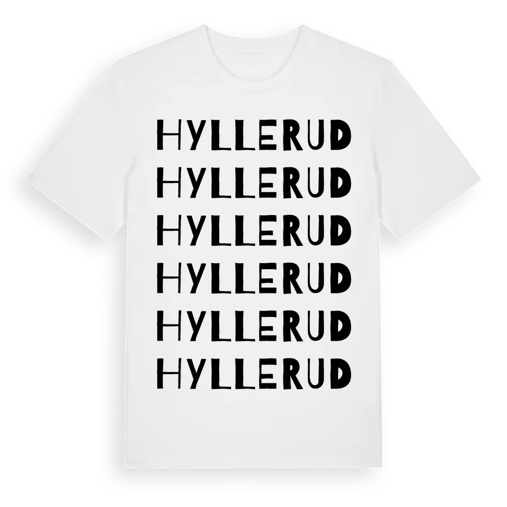 Hyllerud ordlek t-shirt är inspirerad av Hyllerud i Värmlands län, Sverige. Tröjan är designad för dig som har en speciell koppling till platsen – oavsett om du bor här, har rötterna här eller bara älskar Hyllerud.