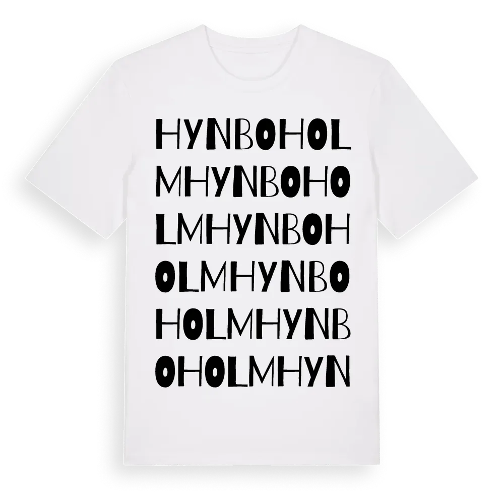 Hynboholm ordlek t-shirt är inspirerad av byn Hynboholm i Värmlands län, Sverige. Tröjan är designad för dig som har en speciell koppling till platsen – oavsett om du bor här, har rötterna här eller bara älskar Hynboholm.