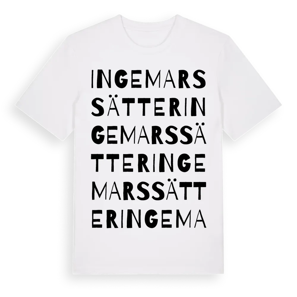 Ingemarssätter ordlek t-shirt är inspirerad av Ingemarssätter i Värmlands län, Sverige. Tröjan är designad för dig som har en speciell koppling till platsen – oavsett om du bor här, har rötterna här eller bara älskar Ingemarssätter.
