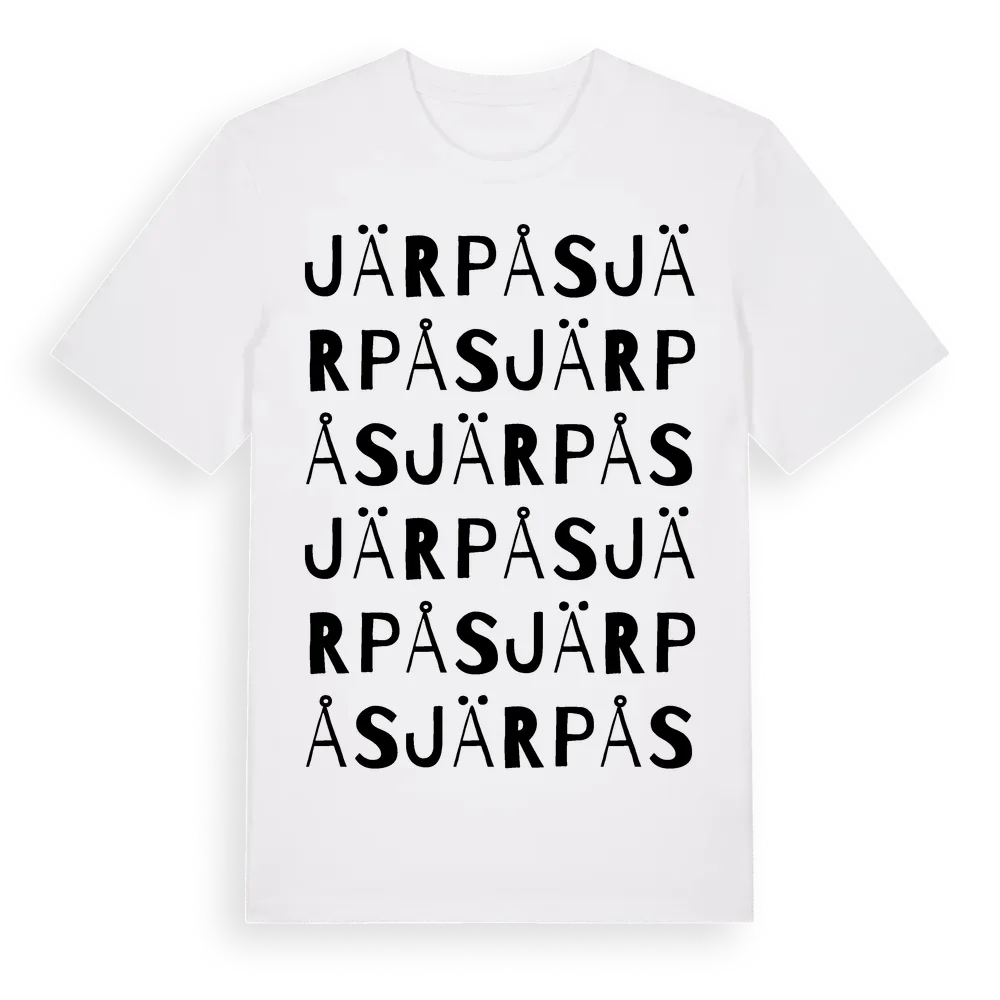 Järpås ordlek t-shirt är inspirerad av Järpås i Värmlands län, Sverige. Tröjan är designad för dig som har en speciell koppling till platsen – oavsett om du bor här, har rötterna här eller bara älskar Järpås.