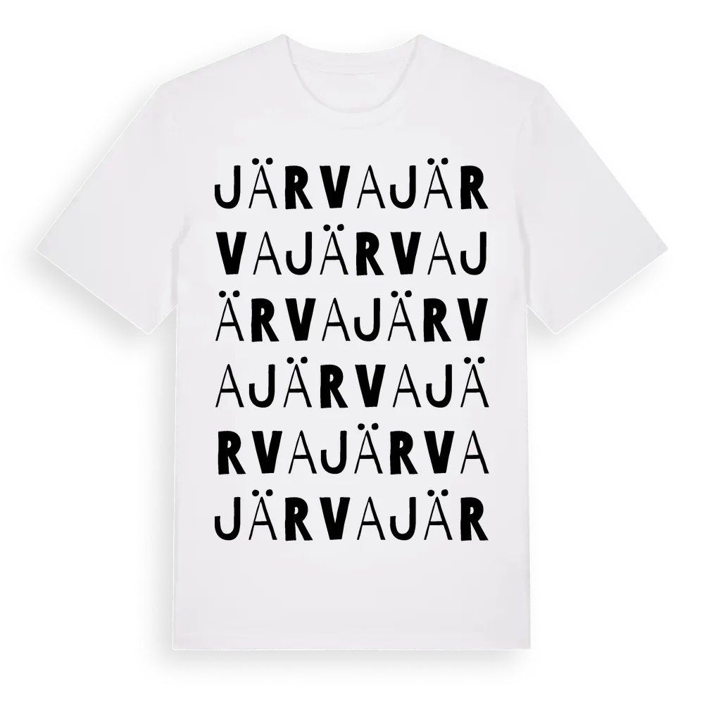 Järva ordlek t-shirt är inspirerad av Järva i Värmlands län, Sverige. Tröjan är designad för dig som har en speciell koppling till platsen – oavsett om du bor här, har rötterna här eller bara älskar Järva.