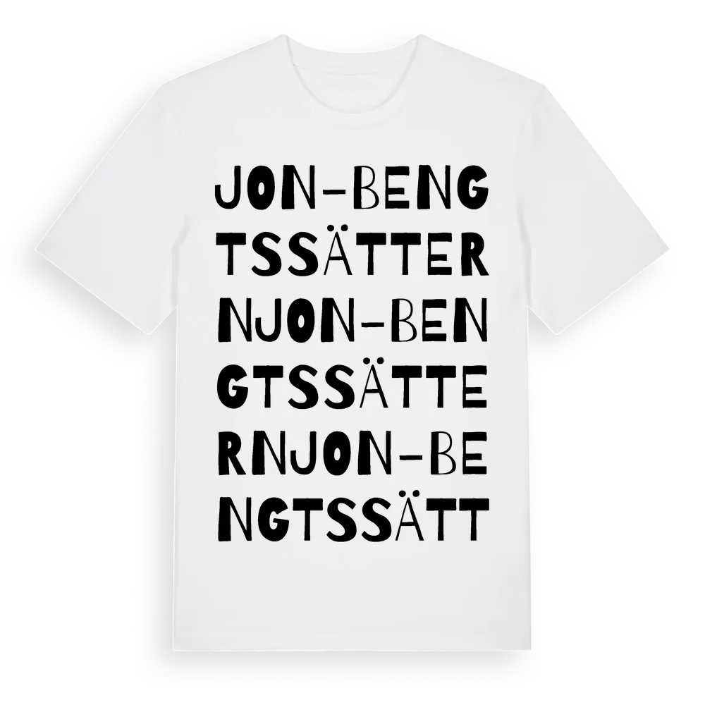Jon-Bengtssättern ordlek t-shirt är inspirerad av Jon-Bengtssättern i Värmlands län, Sverige. Tröjan är designad för dig som har en speciell koppling till platsen – oavsett om du bor här, har rötterna här eller bara älskar Jon-Bengtssättern.