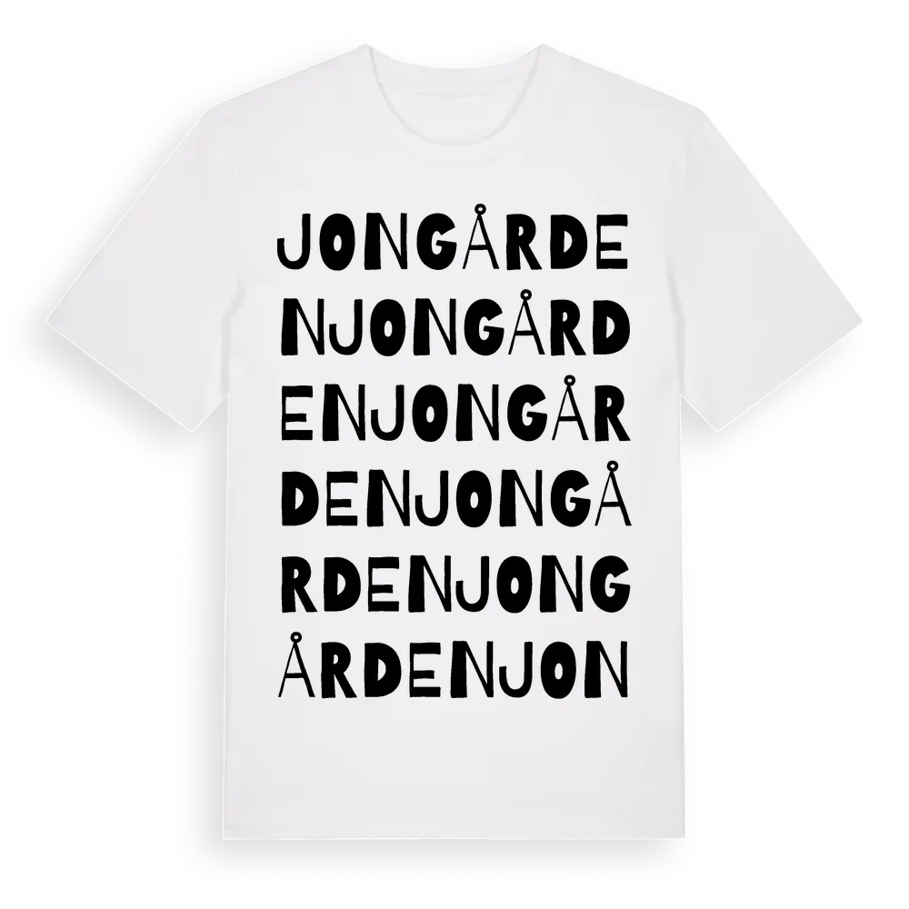Jongården ordlek t-shirt är inspirerad av Jongården i Värmlands län, Sverige. Tröjan är designad för dig som har en speciell koppling till platsen – oavsett om du bor här, har rötterna här eller bara älskar Jongården.