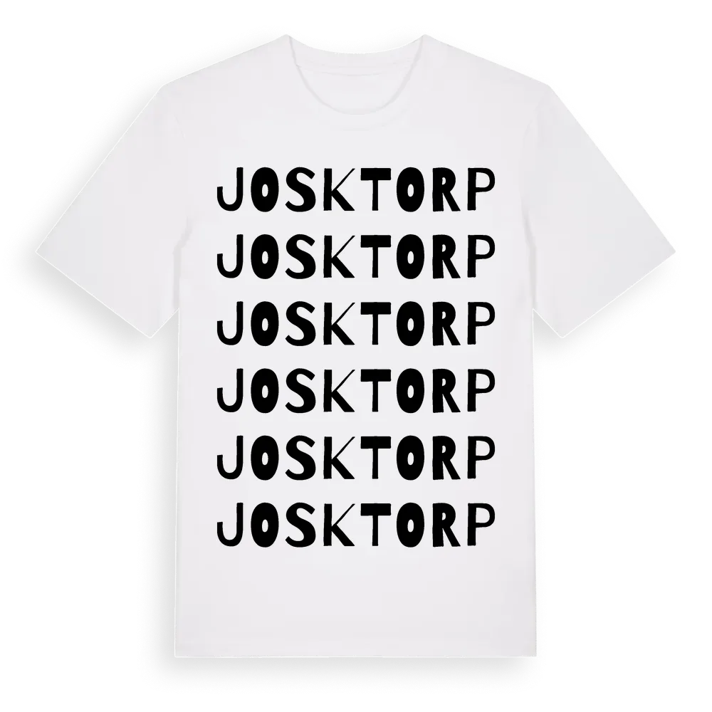 Josktorp ordlek t-shirt är inspirerad av Josktorp i Värmlands län, Sverige. Tröjan är designad för dig som har en speciell koppling till platsen – oavsett om du bor här, har rötterna här eller bara älskar Josktorp.