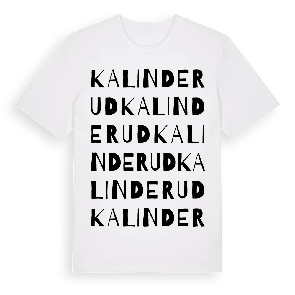 Kalinderud ordlek t-shirt är inspirerad av Kalinderud i Värmlands län, Sverige. Tröjan är designad för dig som har en speciell koppling till platsen – oavsett om du bor här, har rötterna här eller bara älskar Kalinderud.