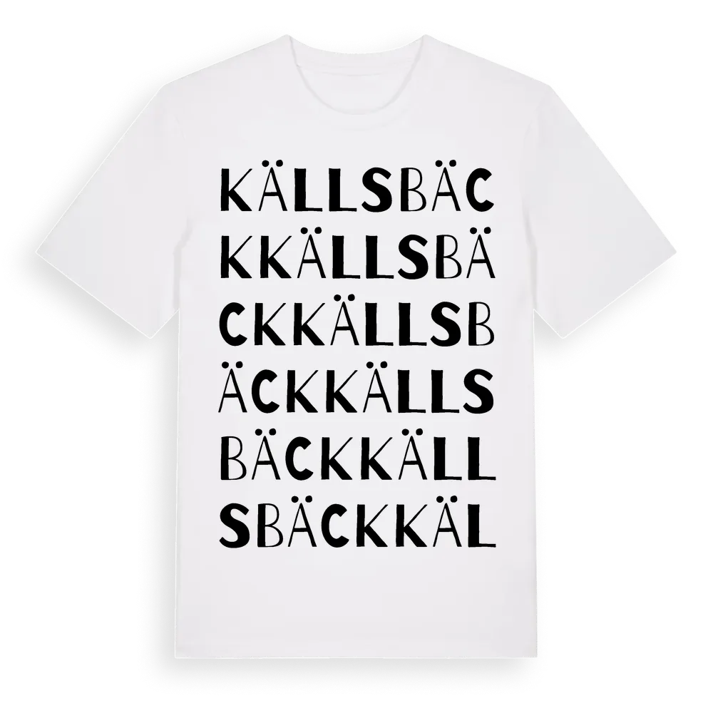 Källsbäck ordlek t-shirt är inspirerad av Källsbäck i Värmlands län, Sverige. Tröjan är designad för dig som har en speciell koppling till platsen – oavsett om du bor här, har rötterna här eller bara älskar Källsbäck.
