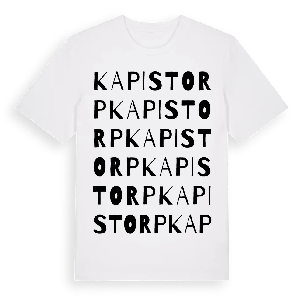 Kapistorp ordlek t-shirt är inspirerad av Kapistorp i Värmlands län, Sverige. Tröjan är designad för dig som har en speciell koppling till platsen – oavsett om du bor här, har rötterna här eller bara älskar Kapistorp.