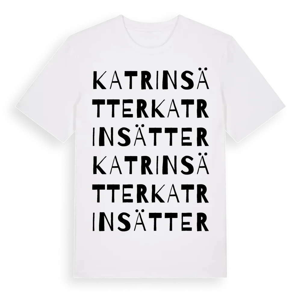 Katrinsätter ordlek t-shirt är inspirerad av Katrinsätter i Värmlands län, Sverige. Tröjan är designad för dig som har en speciell koppling till platsen – oavsett om du bor här, har rötterna här eller bara älskar Katrinsätter.
