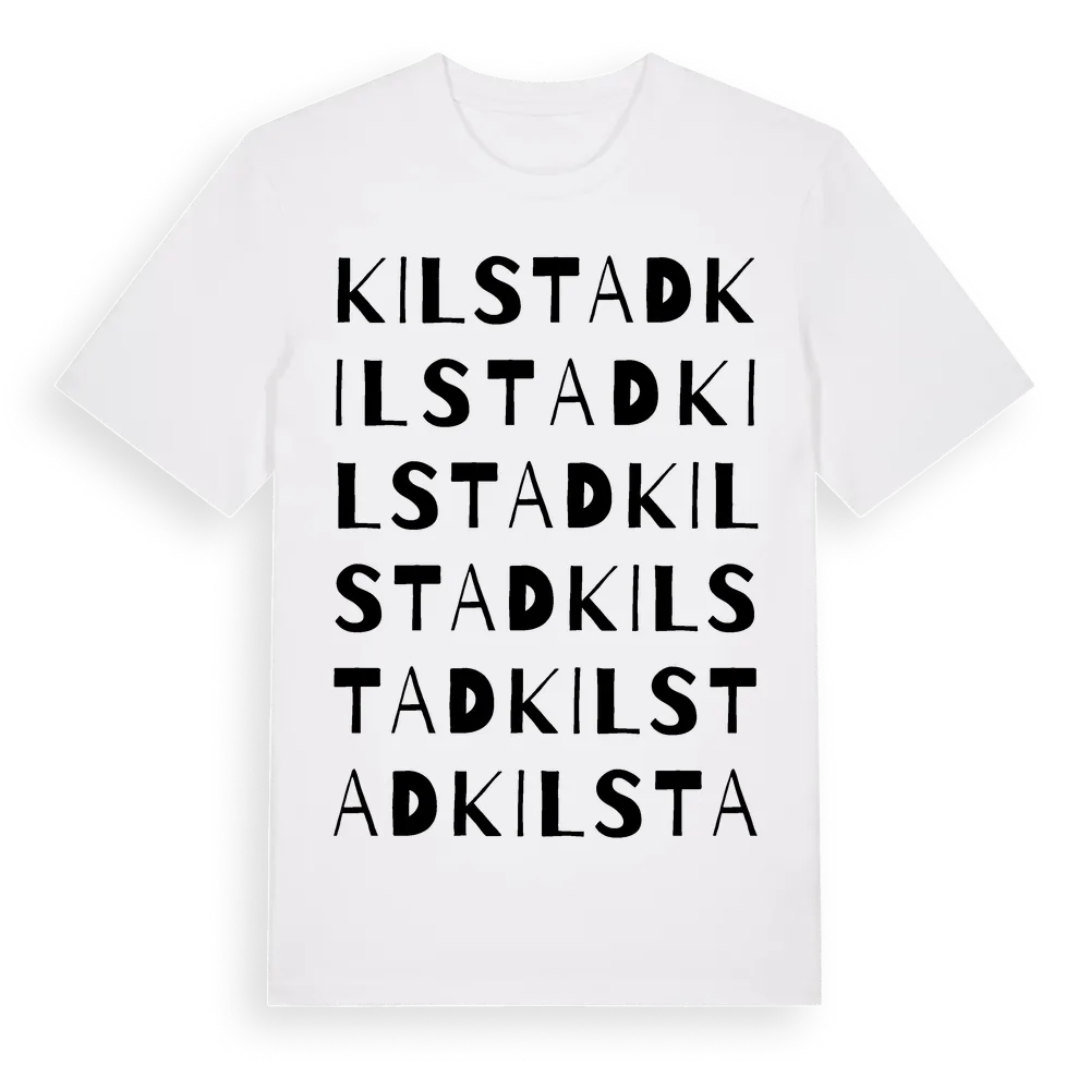 Kilstad ordlek t-shirt är inspirerad av Kilstad i Värmlands län, Sverige. Tröjan är designad för dig som har en speciell koppling till platsen – oavsett om du bor här, har rötterna här eller bara älskar Kilstad.