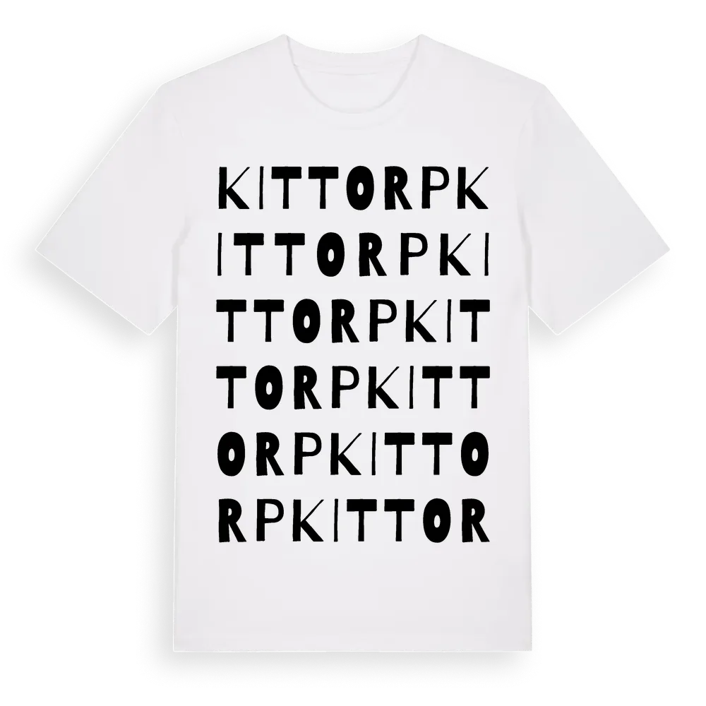 Kittorp ordlek t-shirt är inspirerad av Kittorp i Värmlands län, Sverige. Tröjan är designad för dig som har en speciell koppling till platsen – oavsett om du bor här, har rötterna här eller bara älskar Kittorp.