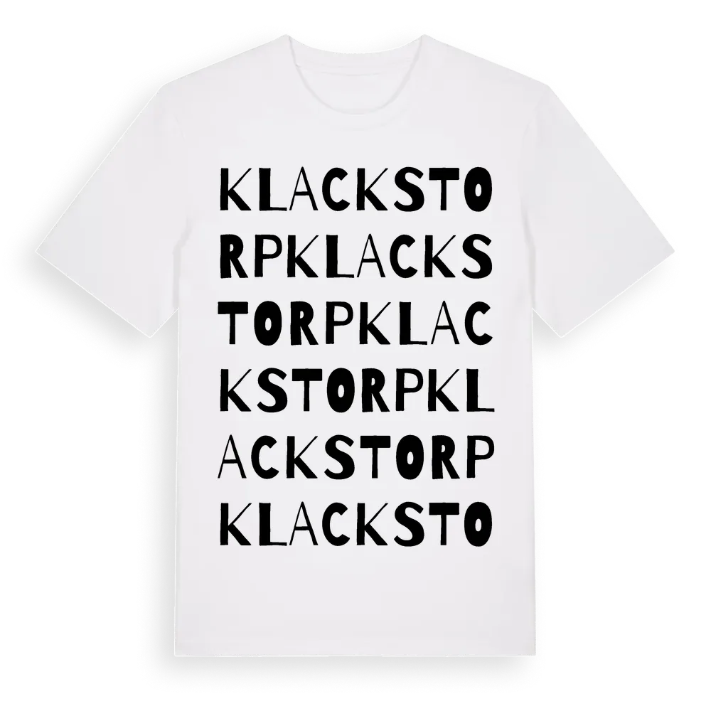 Klackstorp ordlek t-shirt är inspirerad av Klackstorp i Värmlands län, Sverige. Tröjan är designad för dig som har en speciell koppling till platsen – oavsett om du bor här, har rötterna här eller bara älskar Klackstorp.
