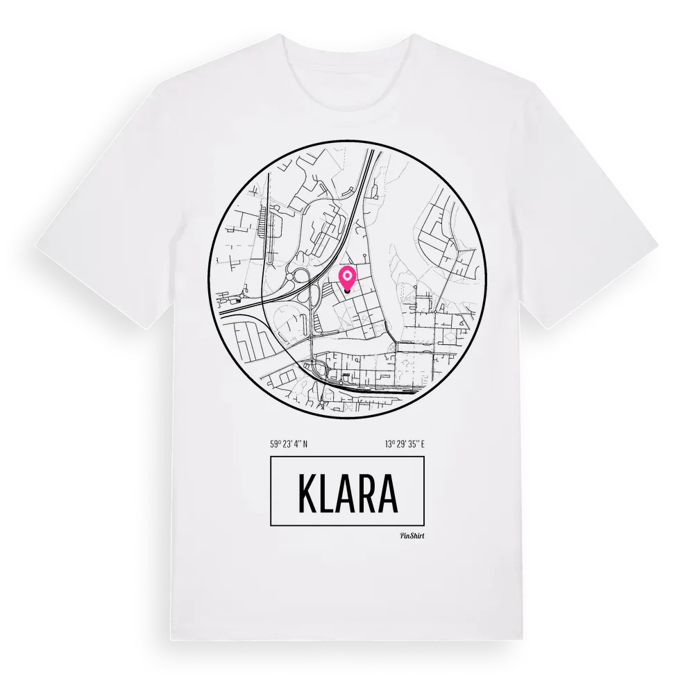 Klara t-shirt är inspirerad av stadsdelen Klara i Värmlands län, Sverige. Tröjan är designad för dig som har en speciell koppling till platsen – oavsett om du bor här, har rötterna här eller bara älskar Klara.