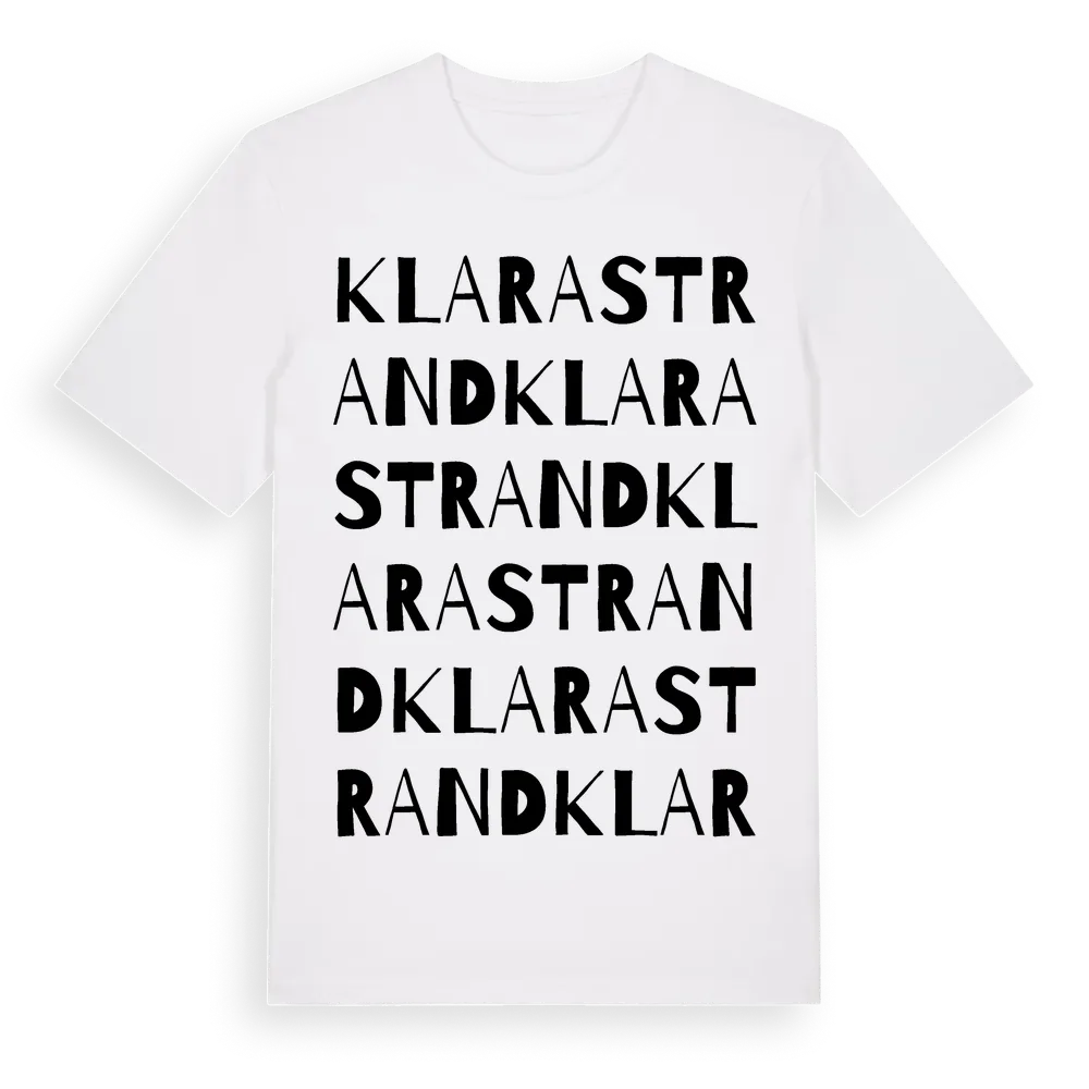 Klara Strand ordlek t-shirt är inspirerad av Klara Strand i Värmlands län, Sverige. Tröjan är designad för dig som har en speciell koppling till platsen – oavsett om du bor här, har rötterna här eller bara älskar Klara Strand.