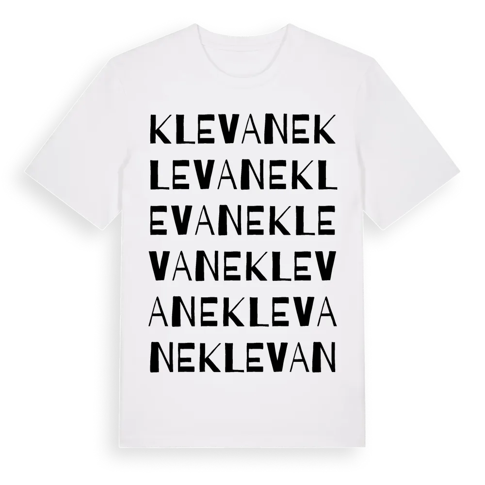Klevane ordlek t-shirt är inspirerad av Klevane i Värmlands län, Sverige. Tröjan är designad för dig som har en speciell koppling till platsen – oavsett om du bor här, har rötterna här eller bara älskar Klevane.