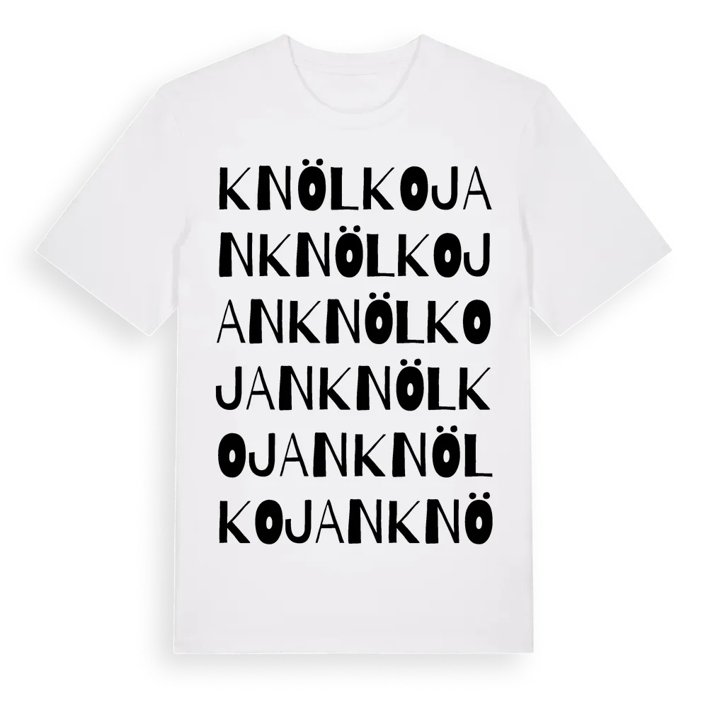 Knölkojan ordlek t-shirt är inspirerad av Knölkojan i Värmlands län, Sverige. Tröjan är designad för dig som har en speciell koppling till platsen – oavsett om du bor här, har rötterna här eller bara älskar Knölkojan.