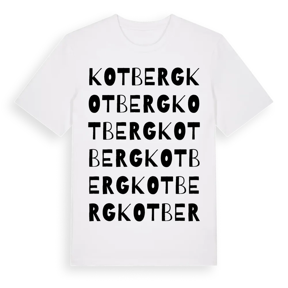 Kotberg ordlek t-shirt är inspirerad av Kotberg i Värmlands län, Sverige. Tröjan är designad för dig som har en speciell koppling till platsen – oavsett om du bor här, har rötterna här eller bara älskar Kotberg.