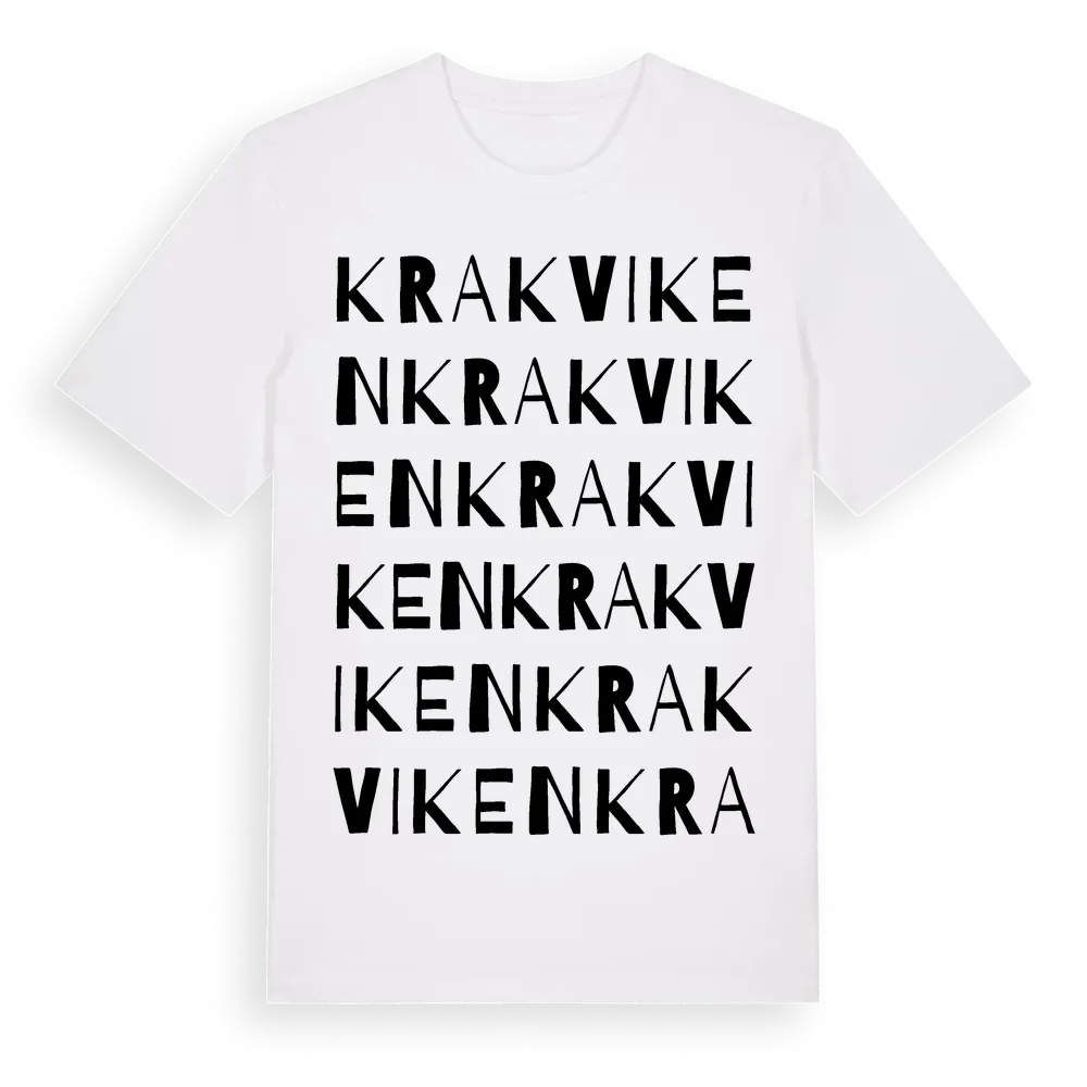 Krakviken ordlek t-shirt är inspirerad av Krakviken i Värmlands län, Sverige. Tröjan är designad för dig som har en speciell koppling till platsen – oavsett om du bor här, har rötterna här eller bara älskar Krakviken.