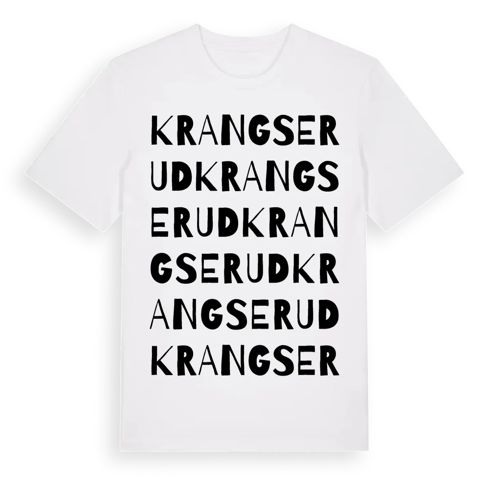 Krangserud ordlek t-shirt är inspirerad av Krangserud i Värmlands län, Sverige. Tröjan är designad för dig som har en speciell koppling till platsen – oavsett om du bor här, har rötterna här eller bara älskar Krangserud.