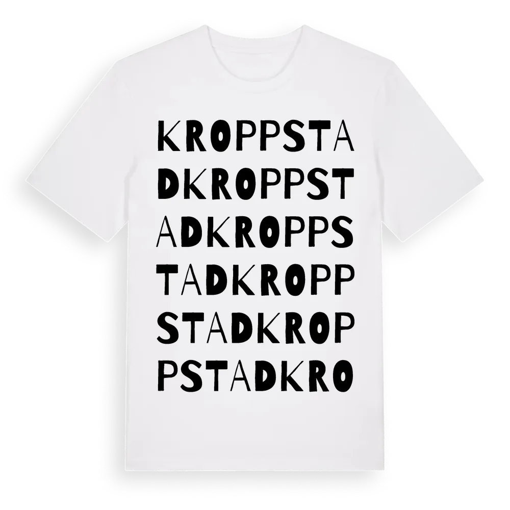 Kroppstad ordlek t-shirt är inspirerad av Kroppstad i Värmlands län, Sverige. Tröjan är designad för dig som har en speciell koppling till platsen – oavsett om du bor här, har rötterna här eller bara älskar Kroppstad.