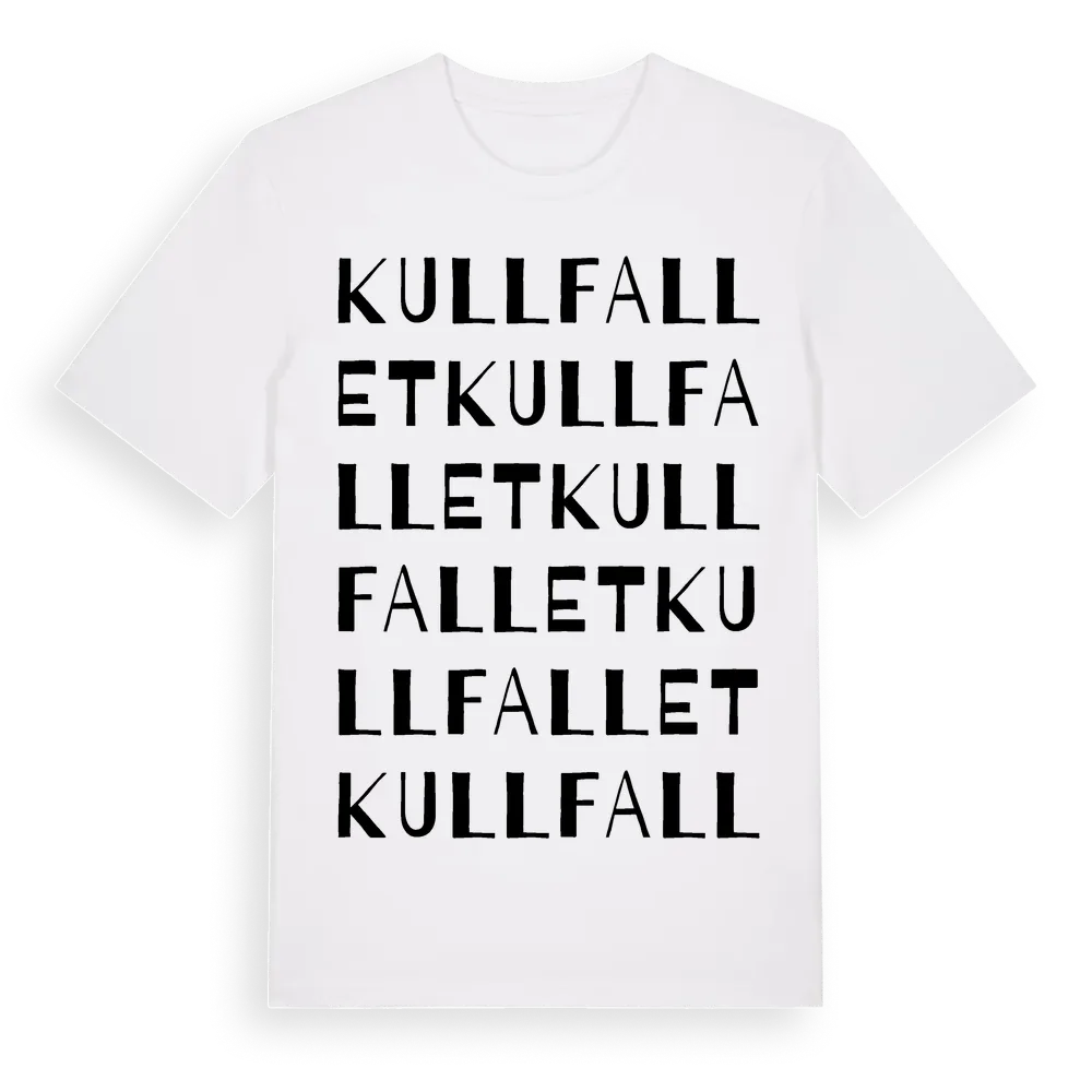 Kullfallet ordlek t-shirt är inspirerad av Kullfallet i Värmlands län, Sverige. Tröjan är designad för dig som har en speciell koppling till platsen – oavsett om du bor här, har rötterna här eller bara älskar Kullfallet.