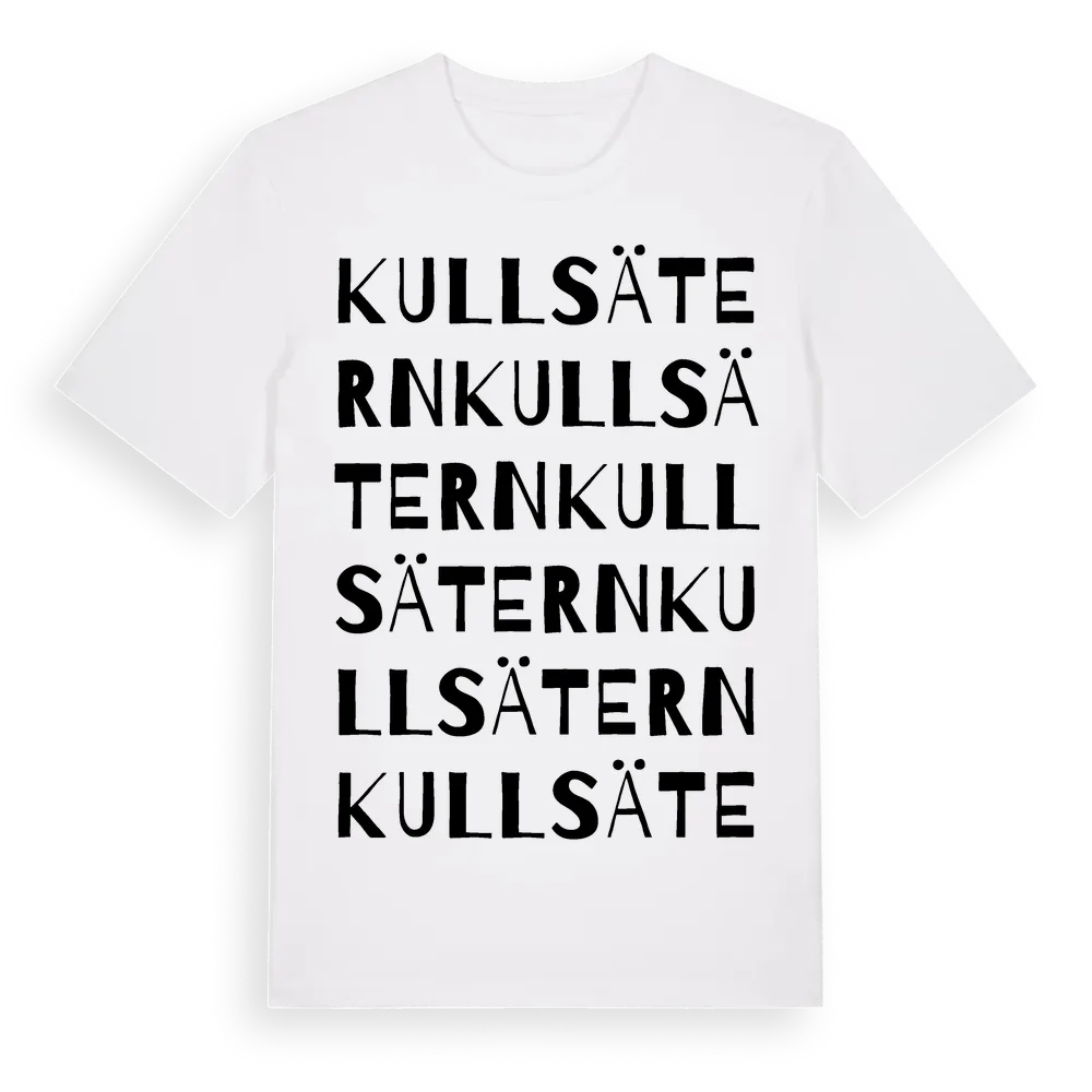 Kullsätern ordlek t-shirt är inspirerad av Kullsätern i Värmlands län, Sverige. Tröjan är designad för dig som har en speciell koppling till platsen – oavsett om du bor här, har rötterna här eller bara älskar Kullsätern.