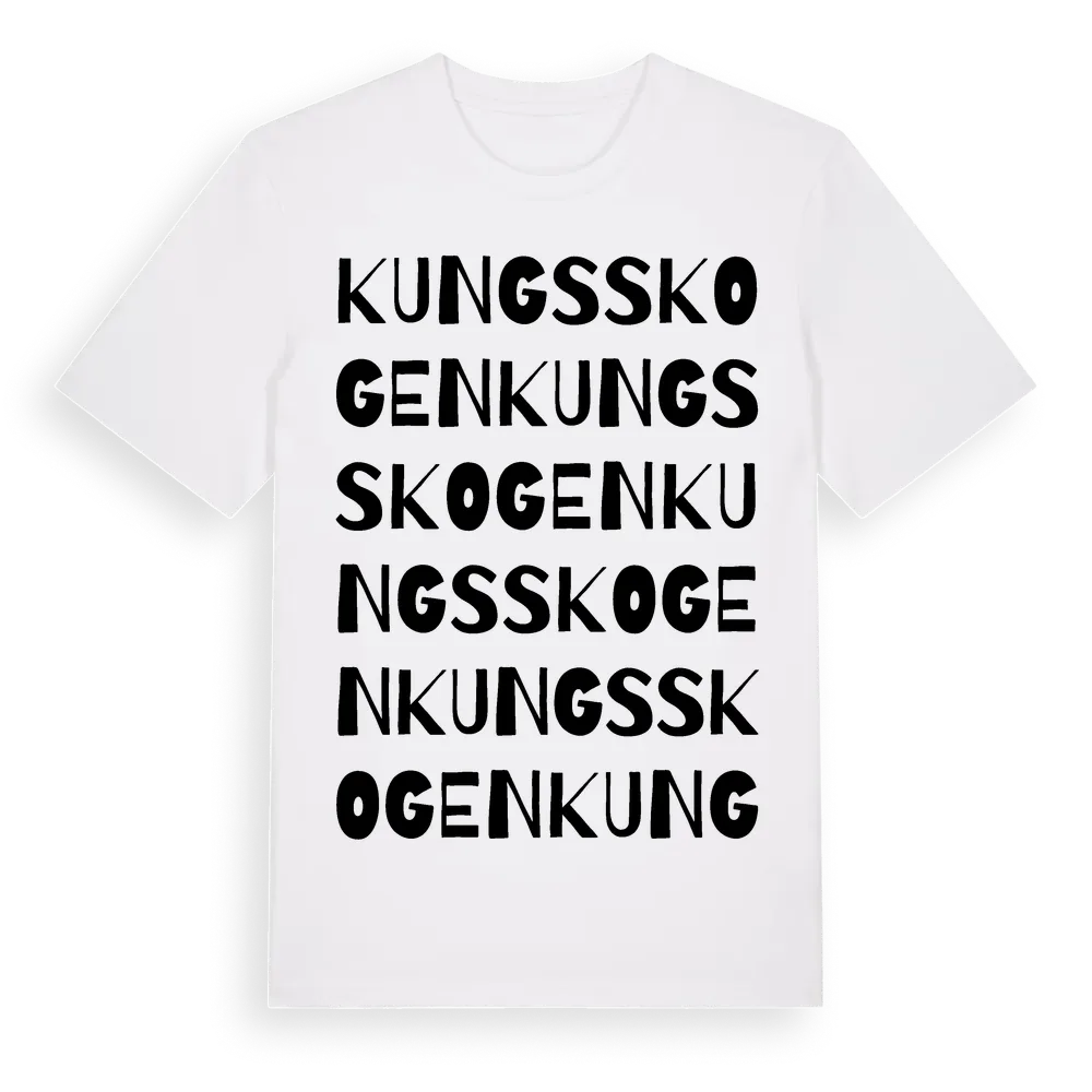 Kungsskogen ordlek t-shirt är inspirerad av byn Kungsskogen i Värmlands län, Sverige. Tröjan är designad för dig som har en speciell koppling till platsen – oavsett om du bor här, har rötterna här eller bara älskar Kungsskogen.