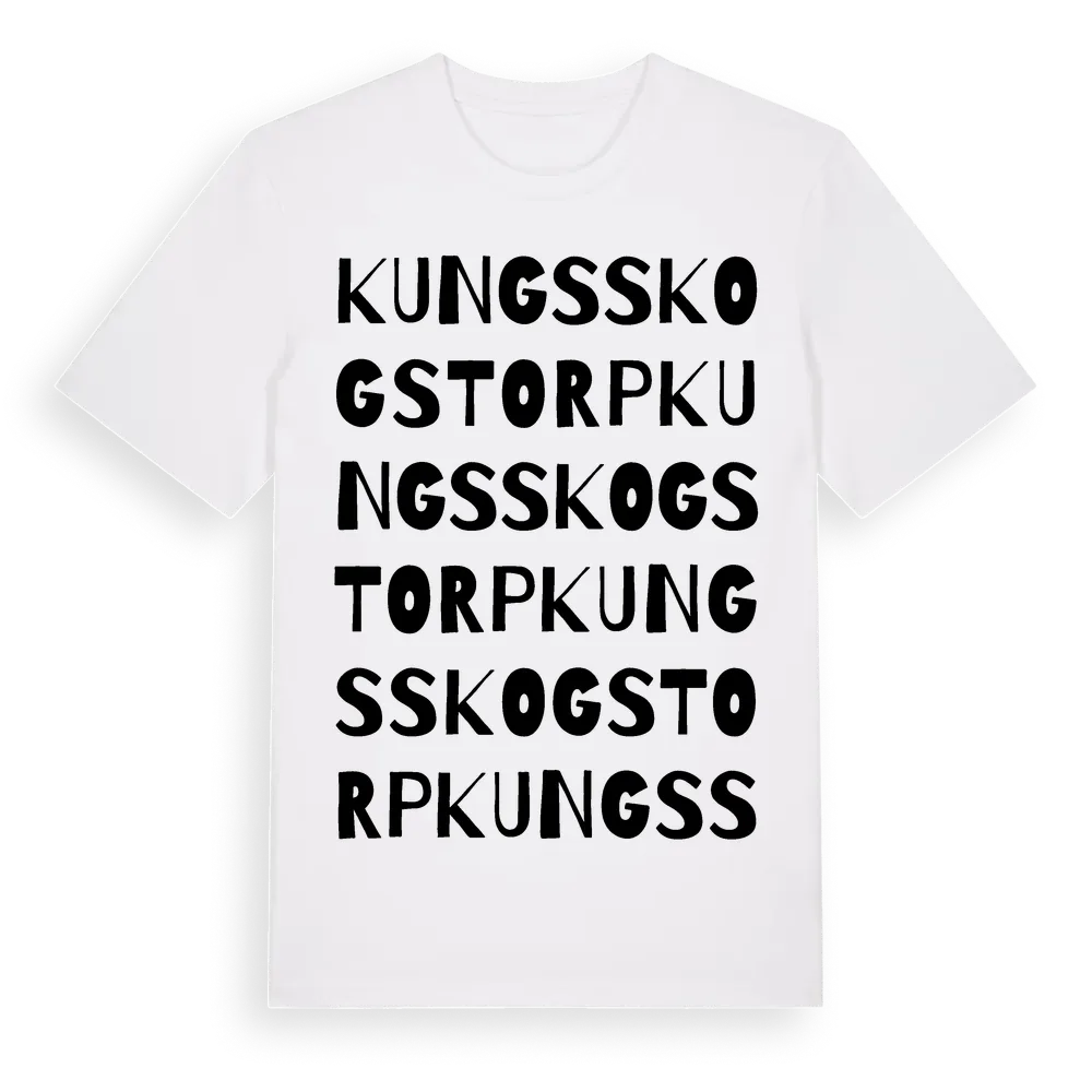 Kungsskogstorp ordlek t-shirt är inspirerad av Kungsskogstorp i Värmlands län, Sverige. Tröjan är designad för dig som har en speciell koppling till platsen – oavsett om du bor här, har rötterna här eller bara älskar Kungsskogstorp.