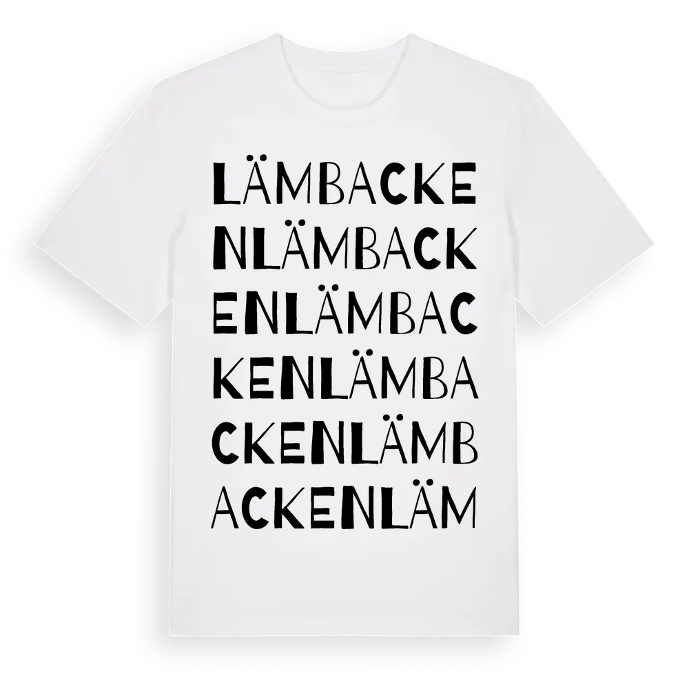 Lämbacken ordlek t-shirt är inspirerad av Lämbacken i Värmlands län, Sverige. Tröjan är designad för dig som har en speciell koppling till platsen – oavsett om du bor här, har rötterna här eller bara älskar Lämbacken.