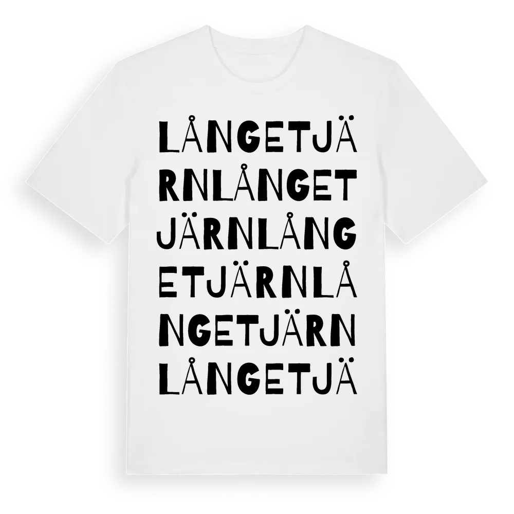 Långetjärn ordlek t-shirt är inspirerad av byn Långetjärn i Värmlands län, Sverige. Tröjan är designad för dig som har en speciell koppling till platsen – oavsett om du bor här, har rötterna här eller bara älskar Långetjärn.