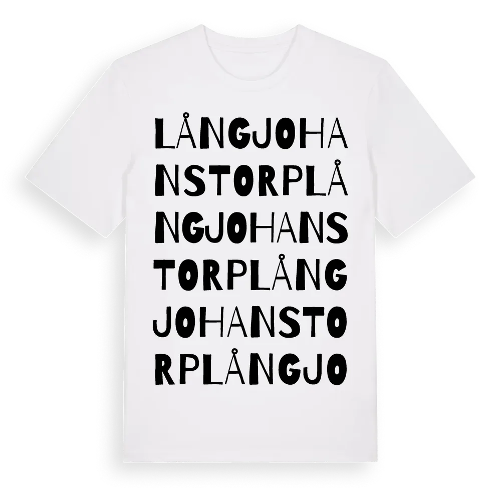 Långjohanstorp ordlek t-shirt är inspirerad av Långjohanstorp i Värmlands län, Sverige. Tröjan är designad för dig som har en speciell koppling till platsen – oavsett om du bor här, har rötterna här eller bara älskar Långjohanstorp.